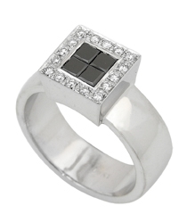 DRT-14010 טבעת יהלומים לבן שחור- פרינסס מרובע