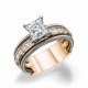 RT-18008 טבעת יוקרה מעוצבת בשיבוץ יהלום מרכזי מרובע וביהלומי צד פרינסס