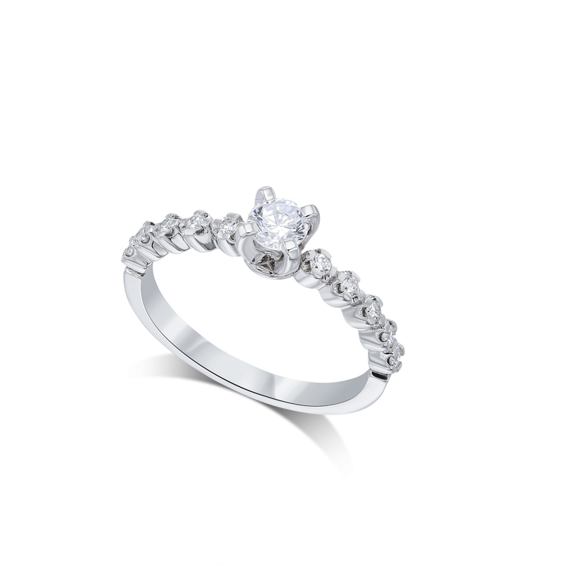 RT20122 טבעת סוליטר יהלום מרכזי עם שורת יהלומים בצד