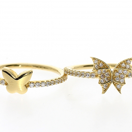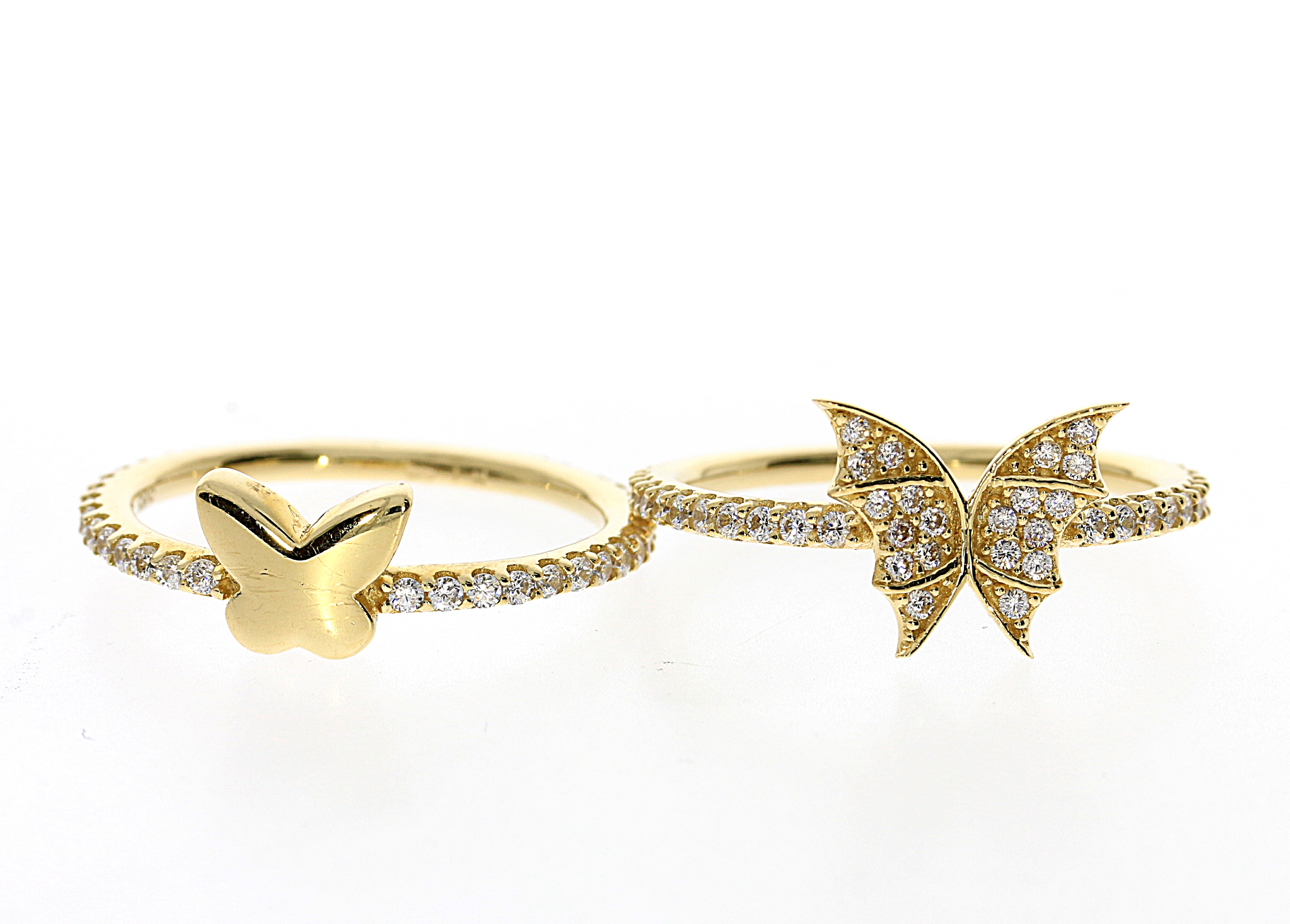 טבעות פרפר בשני דגמים שונים בזהב לבן או צהוב לגיל בת מצווה
