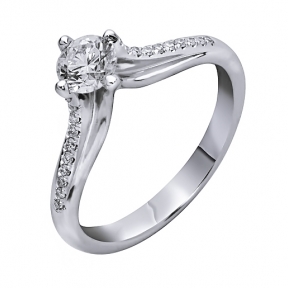 לטבעת הסוליטר הקלאסית יש תוספת יהלומים בצדי היהלום המרכזי