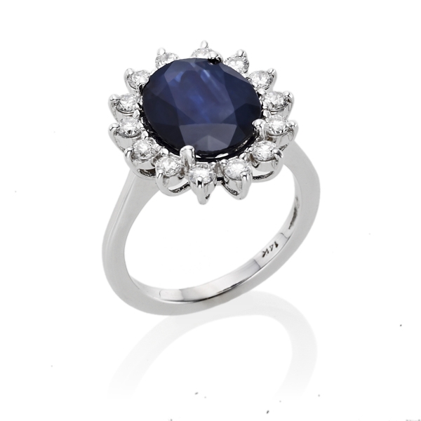 RT-19200 טבעת מודל דיאנה גדולה -משובצת בספיר כחול מרכזי ויהלומים סביב