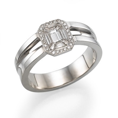 OER-1002 טבעת אוקטבה מעוצבת ביהלום מרכזי אמרלד ואבני צד