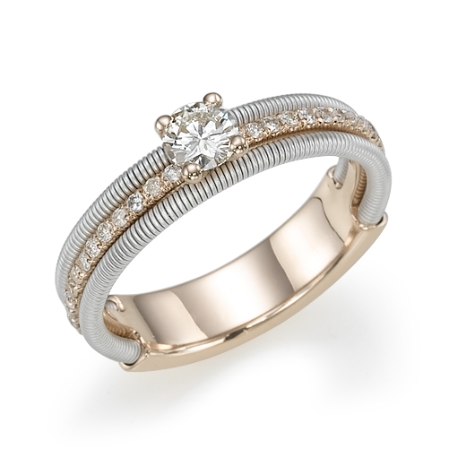 טבעת מעוצבת ספירלה בזהב וורוד וזהב לבן משובצת ביהלומים