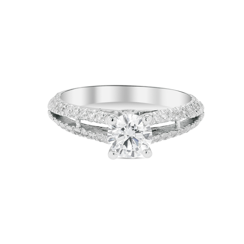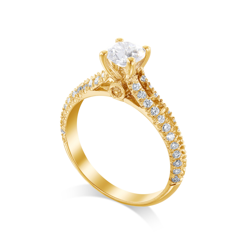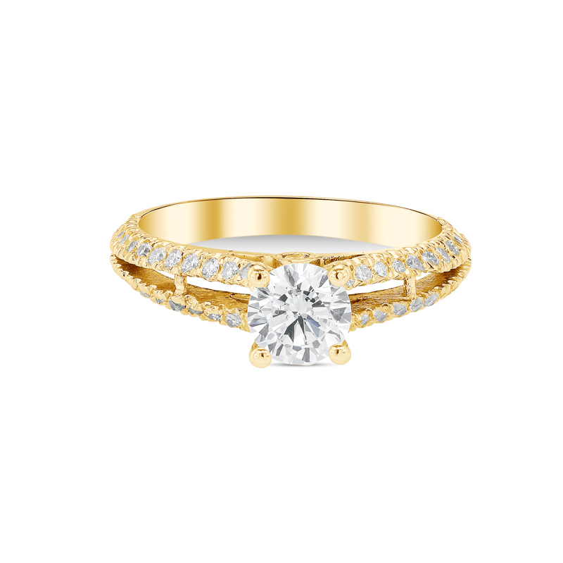 RTT20019 טבעת אירוסין מעוצבת ויקרתית משובצת ביהלום מרכזי ויהלומי צד