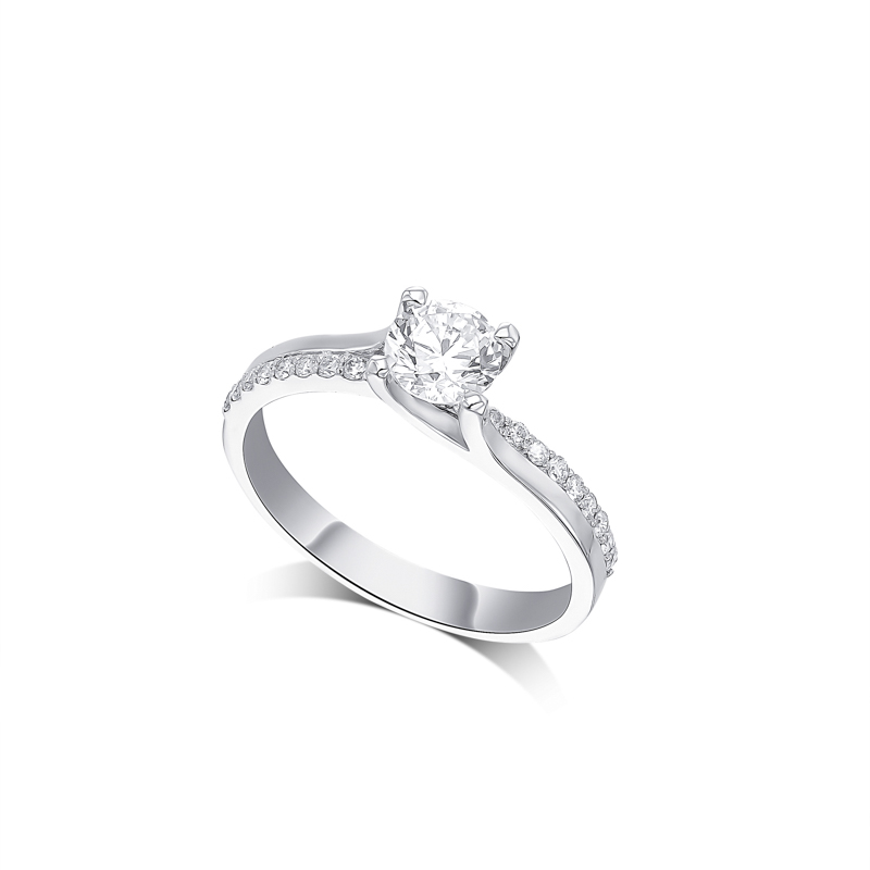 RT-20099 טבעת סוליטר יהלום מרכזי משובץ בטבעת חצי חלק וחצי משובץ יהלומי צד.