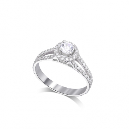 RT20098 טבעת ארוסין מעוצבת ומשובצת יהלום מרכזי וסביב יהלומים,בצדי המרכז 2 שורות בצורת מזלג