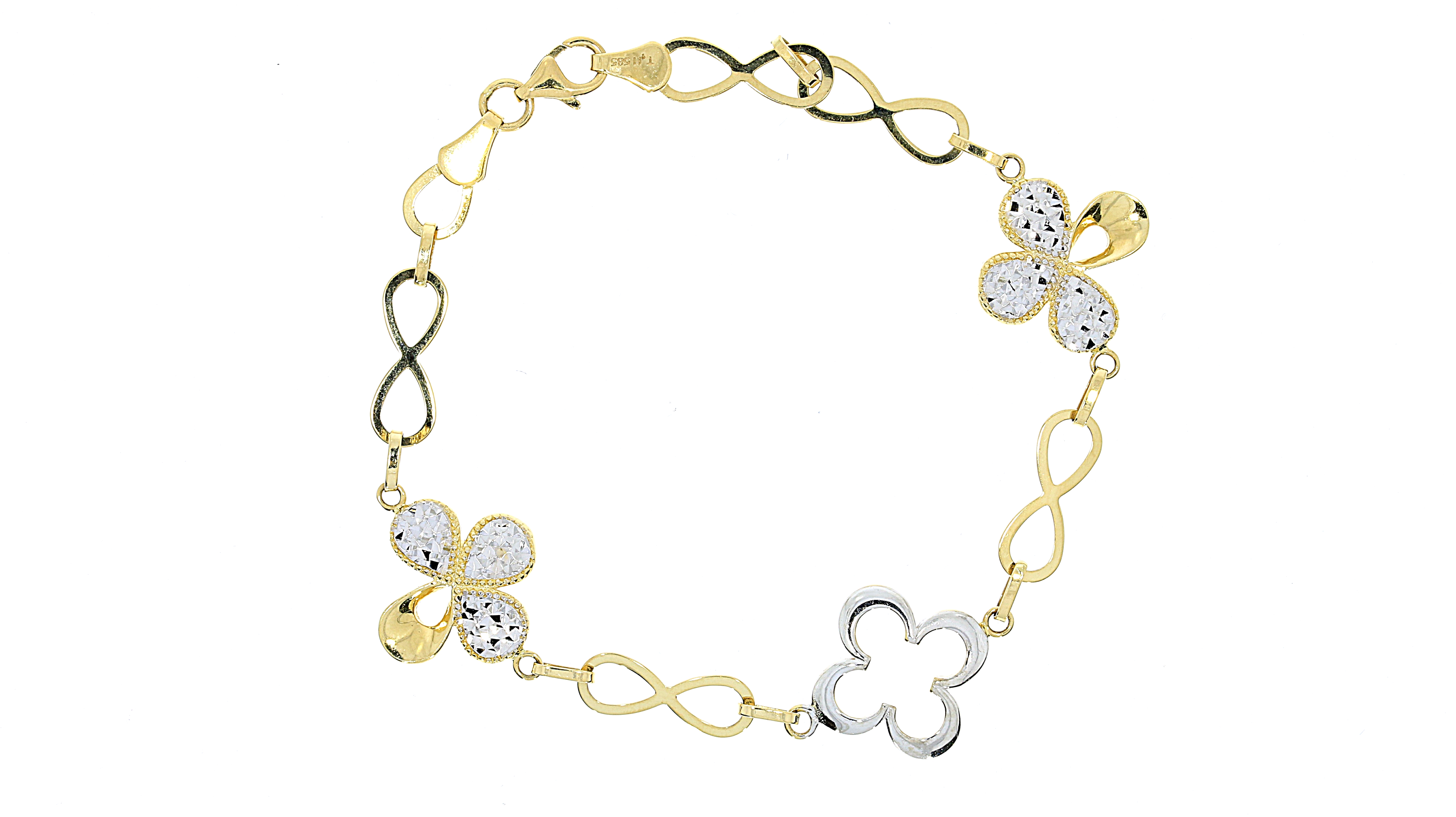 צמיד שרשרת פרחים בזהב משולב צהוב לבן ורוד