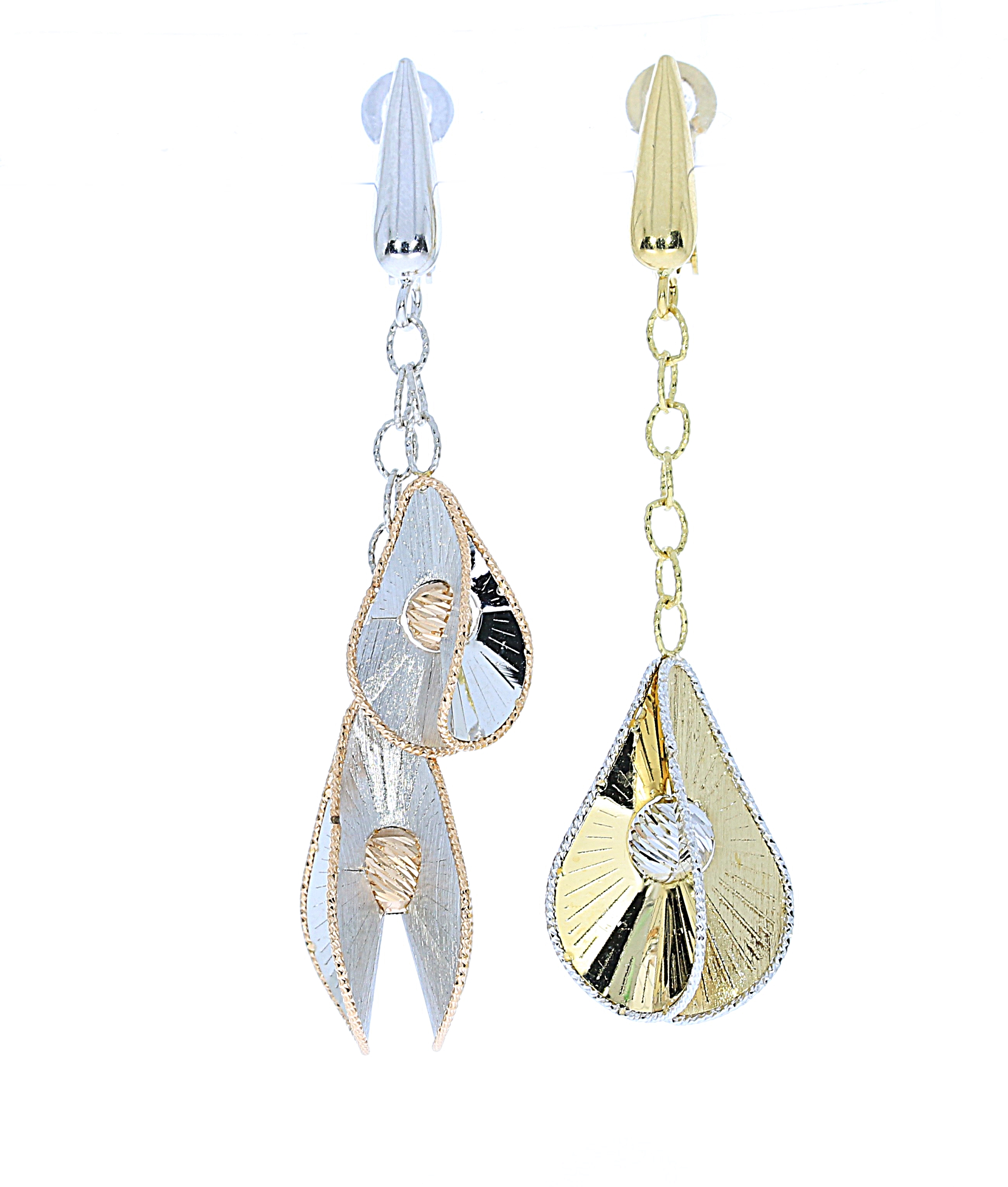 עגלי זהב בצורת מניפה בשני גונים זהב 14K