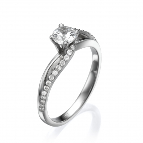 לטבעת הסוליטר הקלאסית יש תוספת יהלומים בצדי היהלום המרכזי