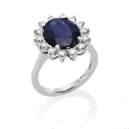 RT-19200 טבעת מודל דיאנה גדולה -משובצת בספיר כחול מרכזי ויהלומים סביב
