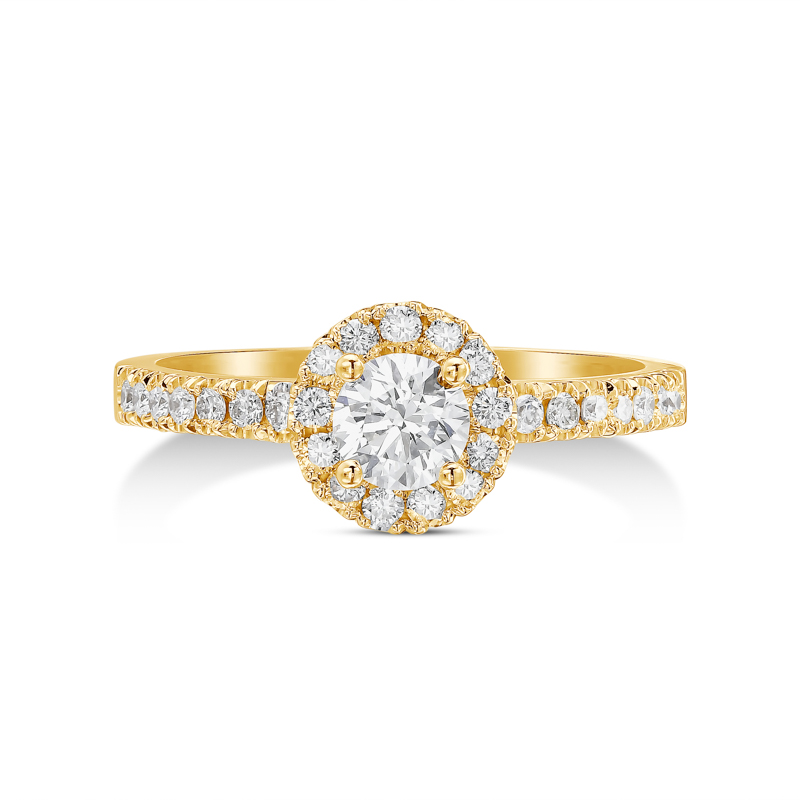 RT200014 טבעת ארוסין עם יהלום מרכזי ומסביבו יהלומים קטנים