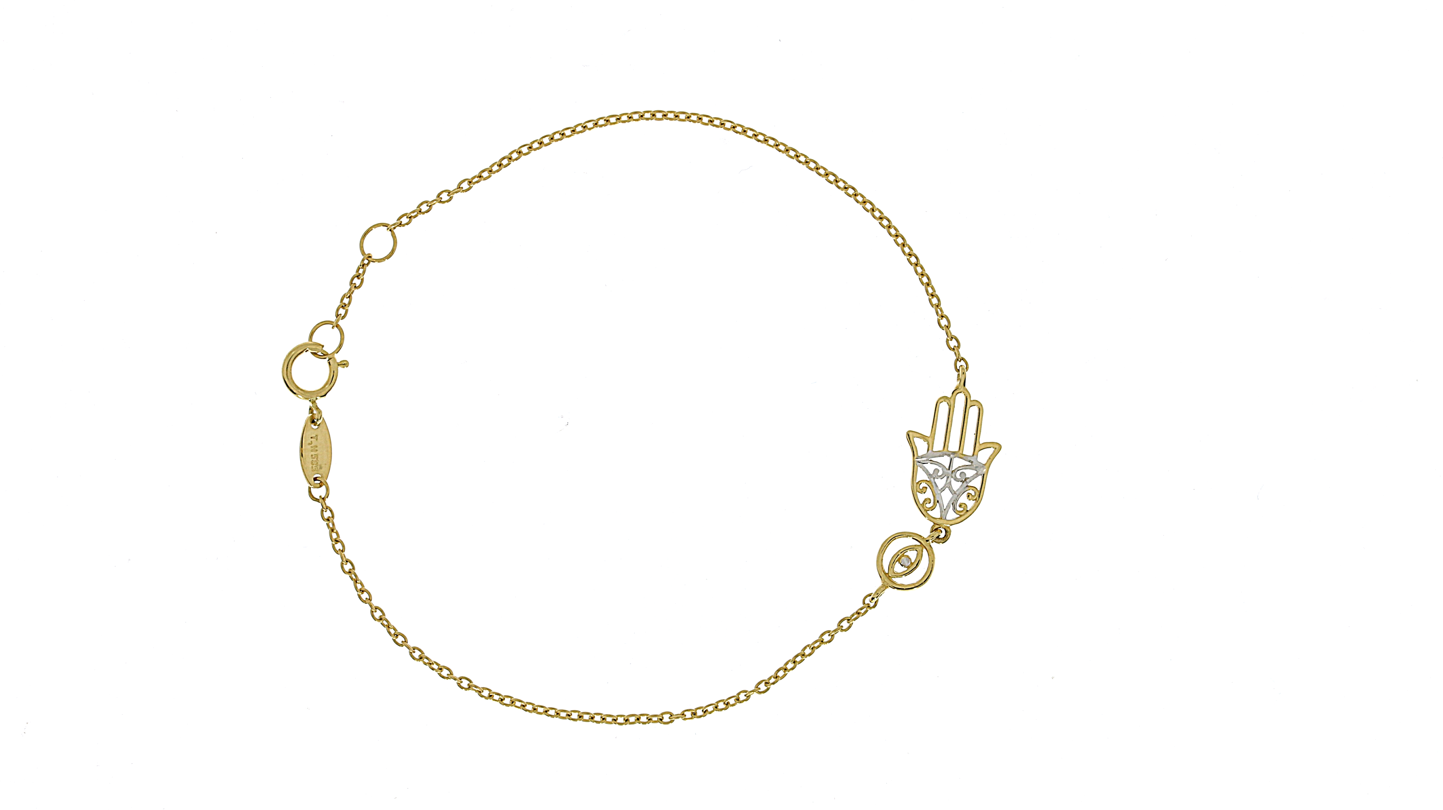 צמיד חמסה בזהב צהוב ולבן משולב