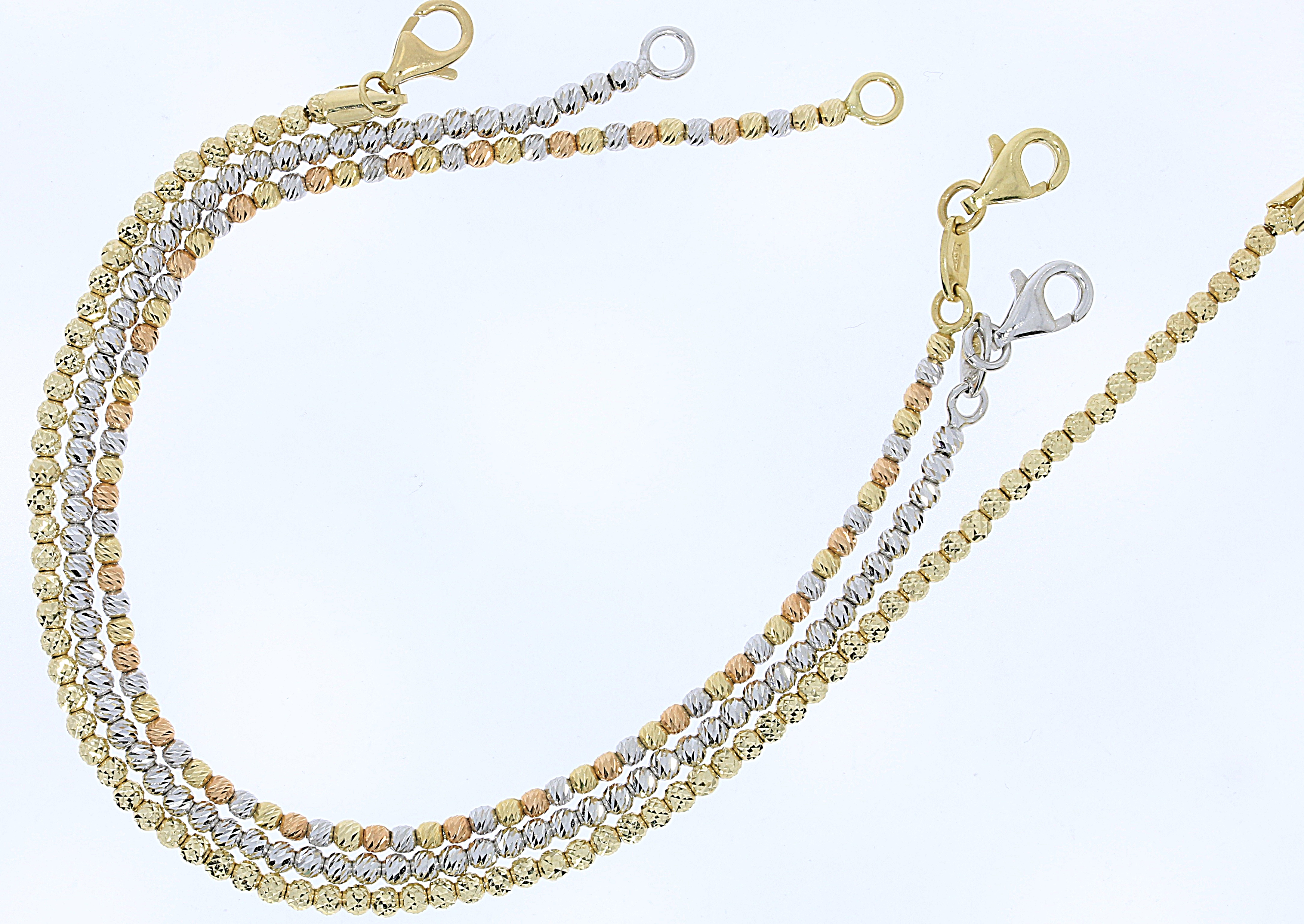 צמיד כדורים קיים בשלושה צבעי זהב לבן צהוב וורד