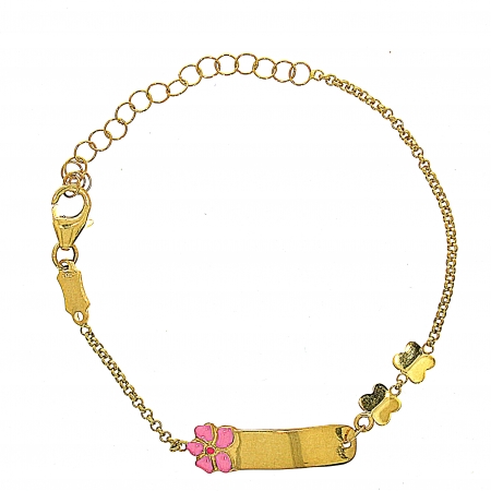 צמיד שרשרת לתינוקת עם לוחית לחריטת שם בזהב צהוב